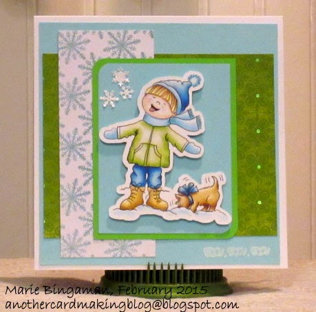 The digital image is one of the Emma's from Fred, She Said, found here. I just love this set of pre-colored digis! They are so easy to use for "coloring challenged" people like myself! I just had to root through my cardstock and designer paper collections to find the best matches, and off I went! I grabbed some of the burlap strings still laying on my desk, and wrapped 3 around the bottom of my panel, and then tied another one in a bow where they intersected. The sentiment piece was die cut with Spellbinder's ovals and big scalloped ovals. I found 3 little stars that were left overs from a Silhouette cut file, distressed and Stickled them, and voila, done!