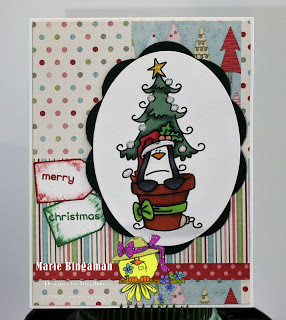 Last night, the hubby and I had to take the long way home due to a power line being down on the road just up from our house. Fire police wouldn't let us through, but we had to get home and let the poor dog out! Thankfully, the long way around wasn't blocked at all, although there were some nice sized branch pieces lying about. Well, anyway, how about looking at another Christmas card for my stash?